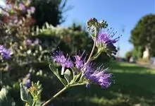 蒙古莸:为唇形科莸属落叶小灌木。常自基部即分枝,嫩枝紫褐色,圆柱形,有毛,老枝毛渐脱落。叶片厚纸质,线状披针形或线状长圆形,背面密生灰白色绒毛。聚伞花序腋生,无苞片和小苞片,花萼钟状,花冠蓝紫色。…全部>>
