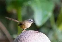 黑喉山鹪莺:体长16厘米,是一种长尾的褐色鹪莺。具明显的白色眉纹及形长的尾。特征为胸具黑色纵纹。上体褐色,两胁黄褐,腹部皮黄;脸颊灰,具明显的白色眉纹及形长的尾。无下髭纹,下体少黑色。虹膜浅褐色,…全部>>