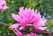 菊花桃是蔷薇科、桃属落叶灌木或小乔木,树干灰褐色,小枝细长,无毛,有光泽,绿色,向阳处转变成红色,冬芽圆锥形,常个簇生,中间为叶芽,两侧为花芽。叶片椭圆状披针形。花生于叶腋,粉红色或红色,重瓣,…全部>>