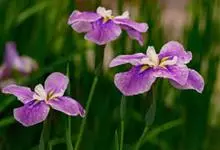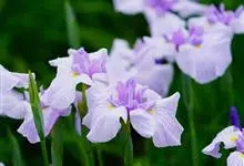 花菖蒲:是玉蝉花的变种。多年生宿根挺水型水生花卉。根状茎短而粗,须根多并有纤维状枯叶梢,叶基生,线形,叶中脉凸起,两侧脉较平整。花葶直立并伴有退化叶1-3枚。花大直径可达15厘米。外轮三片花瓣呈椭圆…全部>>