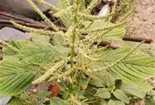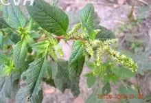 反枝苋是苋科苋属的一年生草本植物。株高达1米;茎密被柔毛;叶菱状卵形或椭圆状卵形,先端锐尖或尖凹,两面及边缘被柔毛,下面毛较密;穗状圆锥花序,顶生花穗较侧生者长;花被片长圆形或长圆状倒卵形,…全部>>