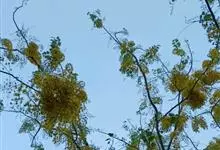 腊肠树:是豆科腊肠树属植物。落叶乔木,高可达15米;枝细长;树皮灰色,老时粗糙,暗褐色。叶长30-40厘米,小叶对生,薄革质,阔卵形,卵形或长圆形,边全缘,幼嫩时两面被微柔毛,老时无毛;叶脉纤细,…全部>>