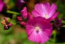 锦葵:二年生或多年生直立草本,高50-90厘米,分枝多,疏被粗毛。叶圆心形或肾形,具5-7圆齿状钝裂片,两面均无毛或仅脉上疏被短糙伏毛。花3-11朵簇生,小苞片3,长圆形疏被柔毛;花紫红色或白色,…全部>>