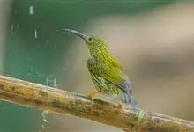 纹背捕蛛鸟:为太阳鸟科捕蛛鸟属的鸟类。是太阳鸟科中体型较大的一种,体重25-45克,体长160-210毫米。嘴粗长而尖且向下弯曲。上体橄榄黄色具黑色中央斑纹。下体淡黄白色满布黑色纵纹,尾具黑色次端斑。…全部>>