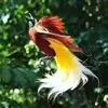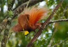 大极乐鸟是极乐鸟属中最大的鸟种。成年雄鸟体长可达到43厘米,雌性可达35厘米。雄鸟的额、颊、喉等墨绿色;头、颈黄色;上体暗赤栗色;腹部葡萄红色,胁部有长饰羽,其基部橙黄,中部黄色,…全部>>