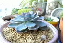 蓝石莲是景天科、拟石莲花属的多肉植物。茎部粗壮,成熟植株茎部木质化。叶片莲座型密集排列,株径不会很大,叶片相对较薄,常年绿色,表面布有白色粉末,中部凹陷,呈倒水滴状。叶尖较尖,叶缘光滑无褶皱,…全部>>