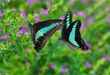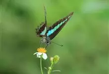青带凤蝶Graphium sarpedon ,又名青凤蝶,是最普遍的中型凤蝶,飞行速度很快。青带凤蝶的翅膀中央有许多浅蓝色的斑点,很整齐地排列成一条直线。这些斑点由上而下逐渐变大,就像一条青色的带子。全部>>