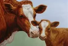 西门塔尔牛是偶蹄目牛科牛属哺乳动物。 体躯长,呈圆筒状,肌肉丰满;头较长,面宽,颈长中等,角较细而向外上方弯曲,尖端稍向上;前躯较后躯发育好,胸深,尻宽平,四肢结实,大腿肌肉发达,乳房发育好。…全部>>