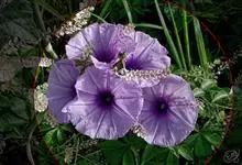 五爪金龙 Sweet),旋花科番薯属多年生缠绕草本植物。茎细长,有细棱;叶片为掌状;花冠紫红色、紫色或淡红色、偶有白色,漏斗状;蒴果近球形。花期5~12月。五爪金龙的叶子类似掌状,有5至7个裂痕,…全部>>