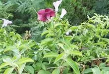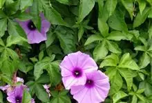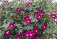 五爪金龙 Sweet),旋花科番薯属多年生缠绕草本植物。茎细长,有细棱;叶片为掌状;花冠紫红色、紫色或淡红色、偶有白色,漏斗状;蒴果近球形。花期5~12月。五爪金龙的叶子类似掌状,有5至7个裂痕,…全部>>