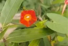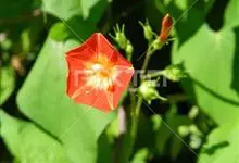 橙红茑萝是旋花科虎掌藤属的一年生草本,又称圆叶茑萝,茎缠绕,平滑,无毛;叶心形,骤尖,全缘,或边缘为多角形,或有时多角状深裂,叶脉掌状;叶柄细弱,几与叶片等长;聚伞花序腋生,总花梗细弱,较叶柄长,…全部>>