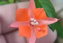 橙红茑萝是旋花科虎掌藤属的一年生草本,又称圆叶茑萝,茎缠绕,平滑,无毛;叶心形,骤尖,全缘,或边缘为多角形,或有时多角状深裂,叶脉掌状;叶柄细弱,几与叶片等长;聚伞花序腋生,总花梗细弱,较叶柄长,…全部>>