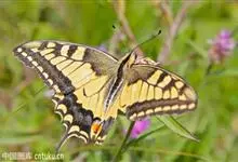 金凤蝶,是鳞翅目凤蝶科凤蝶属动物。金凤蝶为中型凤蝶,翅展70-84毫米,翅背面底色黑褐色,翅脉黑色,翅室具黄斑;前翅背面基部呈暗黄色,亚外缘为黑色,内具一列小黄斑;后翅背面亚外缘区具黑宽边,…全部>>