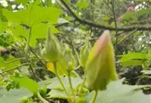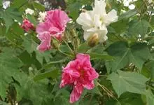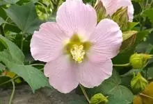 木芙蓉,锦葵科木槿属落叶灌木或小乔木。小枝上有细绒毛;叶片为卵状心形,托叶为披针形,常早落;花单生,花萼为钟形,花冠初为白色或淡红色,后逐渐变为深红色;果实为扁球形,有淡黄色的毛附着。花期8到10月。…全部>>