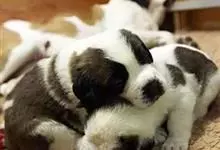圣伯纳犬,别名巴里汉德,属于大型工作犬,肩高约65~90厘米,体重约50~90千克。圣伯纳犬身体强壮,被毛红褐色和白色相间,头圆而宽大。颈部强壮,胸宽深,背直。前肢长直,腕关节略前倾,后肢腿骨粗壮,…全部>>