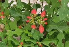 猩猩草:常绿或半常绿灌木,盆栽时株高0.5米-2米,在亚热带地区可长到6米以上。茎直立而光滑,单叶互生,卵状椭圆形至阔披针形,具不规则的深缺刻。长10-15厘米。花小,有蜜腺,排列成密集的伞房花序。…全部>>