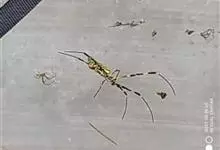 棒络新妇,是蜘蛛目肖蛸科络新妇属节肢动物。雄蛛体长约6毫米,背甲褐色,具黑色纵斑;步足黑色,有橙色环纹;腹部筒形、褐色,有黄斑;雌蛛体长约21毫米,背甲黑色,有大量银色长毛;触肢黄色,步足黑色,…全部>>