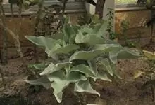 仙女之舞是景天科、伽蓝菜属植物。常绿肉质灌木,株高可达2-3米。幼株茎上有毛。叶有柄;单叶对生,阔卵状三角形,肉质;新叶开展,老叶正面凹、背面圆凸,缘具稀锯齿,橄榄绿色至灰绿色,被稠密的灰白色毛。…全部>>