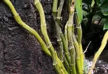 竹节蓼 Meisn.)是蓼科千叶兰属常绿灌木。株高可达1-3米;老枝圆柱形,暗褐色,幼茎扁平,亮绿色,形似叶片,有节及纵沟;叶退化,幼年有少量披针形叶片,端渐尖,基部楔形,全缘或近基部有锯齿,…全部>>