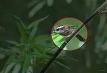 棕脸鹟莺:体长10厘米,是一种色彩亮丽而有特色的莺鸟。头栗色,具黑色侧冠纹。上体绿,腰黄色。下体白,颏及喉杂黑色点斑,上胸沾黄。与栗头鹟莺的区别在头侧栗色,白色眼圈不显著且无翼斑。…全部>>