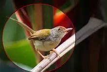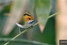 棕脸鹟莺:体长10厘米,是一种色彩亮丽而有特色的莺鸟。头栗色,具黑色侧冠纹。上体绿,腰黄色。下体白,颏及喉杂黑色点斑,上胸沾黄。与栗头鹟莺的区别在头侧栗色,白色眼圈不显著且无翼斑。…全部>>