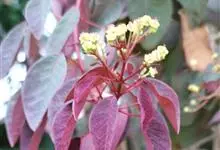 紫锦木是大戟科、大戟属的常绿乔木。叶圆卵形,主脉于两面明显,侧脉数对,边缘全缘,两面红色;花序生于二歧分枝的顶端,总苞阔钟状,裂片呈三角形,边缘具毛,腺体深绿色呈半圆形,…全部>>