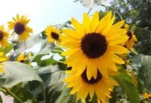 向日葵:是桔梗目、菊科、向日葵属的植物。因花序随太阳转动而得名。是一年生高大草本植物。茎粗壮,高1-3米,不分枝或有时上部分枝,被白色粗硬毛。叶互生,卵状心形或卵形,顶端急尖或渐尖,基生3出脉,…全部>>