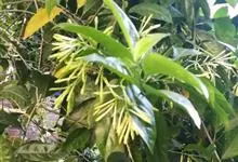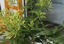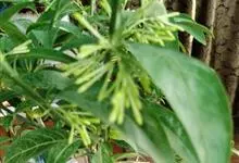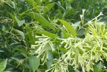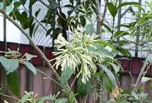 夜香树是茄科、夜香树属直立或近攀援状灌木。枝条细长而下垂。叶有短柄,叶片矩圆状卵形或矩圆状披针形,全缘,顶端渐尖,基部近圆形或宽楔形,两面秃净而发亮,有6-7对侧脉。伞房式聚伞花序,腋生或顶生,…全部>>