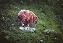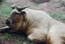 羚牛,偶蹄目牛科羚牛属哺乳动物,俗称扭角羚、野山牛、盘羊。其体形粗壮。尾短。吻鼻部隆起且裸露。前额隆起,毛短而蓬松。角基粗,由头顶长出后先向上升起,又突然翻转,靠近头部,复向外伸,然后又向后弯转,…全部>>