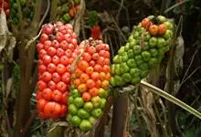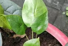 海芋 K. Koch),是天南星科海芋属的大型常绿草本植物;具匍匐根茎,有直立地上茎,基部生不定芽条;叶多数,亚革质,草绿色,箭状卵形,叶柄绿或污紫色,螺旋状排列,粗厚;花序梗圆柱形,绿色,有时污紫色,…全部>>