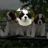 圣伯纳犬,别名巴里汉德,属于大型工作犬,肩高约65~90厘米,体重约50~90千克。圣伯纳犬身体强壮,被毛红褐色和白色相间,头圆而宽大。颈部强壮,胸宽深,背直。前肢长直,腕关节略前倾,后肢腿骨粗壮,…全部>>