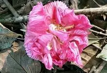 木芙蓉,锦葵科木槿属落叶灌木或小乔木。小枝上有细绒毛;叶片为卵状心形,托叶为披针形,常早落;花单生,花萼为钟形,花冠初为白色或淡红色,后逐渐变为深红色;果实为扁球形,有淡黄色的毛附着。花期8到10月。…全部>>
