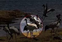 丹顶鹤:是鹤科、鹤属的一种大型涉禽,体长120-160厘米。颈、脚较长,通体大多白色,头顶鲜红色,喉和颈黑色,耳至头枕白色,脚黑色,站立时颈、尾部飞羽和脚黑色,头顶红色,…全部>>