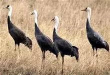 白枕鹤体形与丹顶鹤相似,略小于丹顶鹤,而大于白头鹤。上体为石板灰色。尾羽为暗灰色,末端具有宽阔的黑色横斑。取食时主要用喙啄食,或用喙先拨开表层土壤,然后啄食埋藏在下面的种子和根茎,边走边啄食。…全部>>