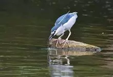 夜鹭是中型涉禽,体长46-60厘米。体较粗胖,颈较短;嘴尖细,微向下曲,黑色;胫裸出部分较少,脚和趾黄色;头顶至背黑绿色而具金属光泽;上体余部灰色;下体白色;枕部披有2-3枚长带状白色饰羽,下垂至背上,…全部>>