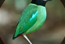 绿胸八色鸫:是雀形目八色鸫科的鸟类,共有12个亚种。体长为16-18厘米,体重65-69克。体型圆胖,尾短,腿长。头黑,上体绿色,两翼深色而具白色斑纹,头顶至后枕深褐,胸及腹部苹果绿,臀亮红。…全部>>