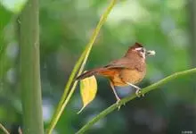 白颊噪鹛是雀形目噪鹛科噪鹛属鸟类,又称土画眉、小画眉、小噪鹃。成鸟额至头顶栗褐色,长眉纹、眼先和颊纹棕白色,眼后至耳羽深褐色,…全部>>
