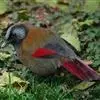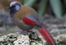丽色噪鹛是红翅噪鹛的指名亚种。中型鸟类,体长23-28厘米。头顶灰橄榄褐色具粗著的黑色纵纹,头侧、颏、喉黑色,耳羽灰白色具黑色纵纹。背和胸、腹棕褐色,两翅具一大的鲜红色斑,尾亦为鲜红色。特征极明显,…全部>>