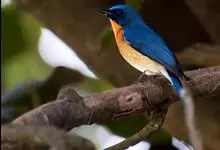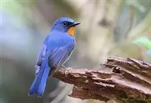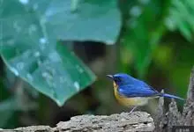 棕腹大仙鹟:体重24-28克,体长15-17厘米,是一种小型的色彩亮丽的鹟。雄鸟上体深蓝,下体棕色,脸黑,额、颈侧小块斑、翼角及腰部亮丽闪辉蓝色。与棕腹仙鹟易混淆,区别在色彩较暗。雌鸟灰褐,…全部>>