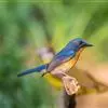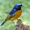 山蓝仙鹟:小型鸟类,体长13-15厘米。雄鸟额基和眼先黑色,颏橙棕色,仅颏尖为蓝黑色,喉、胸、上腹和两胁亦为橙棕色,下体白色范围较小,仅局限于下腹和尾下覆羽。雌鸟上体少黄色,颏、喉、胸概为锈红色,…全部>>