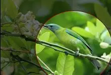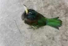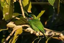 绿拟啄木鸟为鴷形目,须科,拟啄木属的一种。形较大拟啄木鸟略小,体长约260mm。头、颈及胸浅褐而具淡黄白色条纹;喉几为淡黄白色;身体余部草绿色。虹膜棕褐色,眼周裸露部黄色;嘴峰角黄色;跗跖和趾角黄…全部>>