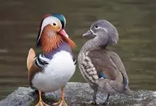 鸳鸯是鸭科鸳鸯属动物。鸳鸯体长约44.5厘米 ;头、背呈灰褐色;颊、嘴基、喉白色,上体余部橄榄褐色,尾部转暗褐色;胸侧与两胁棕褐色;腹部与尾下覆羽白色;雌雄异色。鸳鸯又名匹鸟;因其雌雄不分离,…全部>>