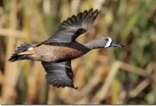蓝翅鸭是雁形目、鸭科的鸟类。身长37-41 cm,头部灰色,眼圈、眼纹和眼先均灰白色。体羽红褐色,羽毛有白色镶边。侧翼有深蓝色翼镜标记。栖息于淡水湖畔,亦有些越冬活动于沿海滩涂盐场、水库、湖池、河流,…全部>>