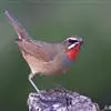 红点颏:是鸟纲、鹟科的鸣禽。又名西伯利亚歌鸲。体长14-17厘米,体重16-27克。雄鸟头部、上体主要为橄榄褐色。眉纹白色。颏部、喉部红色,周围有黑色狭纹。胸部灰色,腹部白色。雌鸟颏部、喉部不呈赤红色,…全部>>