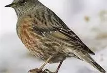 鸲岩鹨是岩鹨科、岩鹨属小型鸟类,体长15-17厘米。头灰棕色,背、肩、腰棕褐色具黑色纵纹,两翅褐色,翅上有白色翅斑。颏、喉沙褐或灰色,胸锈棕色,在喉胸之间有一不明显的黑色颈圈,其余下体白色。特征明显,…全部>>