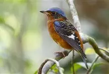 蓝头矶鸫为鹟科矶鸫属的鸟类,是一种候鸟,俗名臭皮翠、白喉叽鸫、白喉石鸫、葫芦翠、虎皮翠。全长19厘米。自额至后颈及翅上的小覆羽均钴蓝色。腰和尾上覆羽浓栗。内侧飞羽有一白色块斑。喉部中央有一大型白斑。…全部>>
