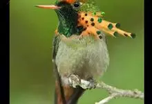 缨冠蜂鸟是世界上体型最小的蜂鸟之一,体长仅6.6厘米,重约2.3克。背部铜绿色,额及下体绿色。臀部具白色条纹,飞行时尤显。缨冠蜂鸟的红褐色冠羽呈火炬状,不算长,非常醒目。冠羽与脸颊突起的橙色或红色的…全部>>
