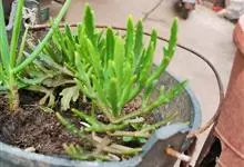 棒叶落地生根是景天科、落地生根属植物。茎直立、粉褐色。叶圆棒形,上表面有沟、粉色,有红褐斑。叶片交互对生,交叉排列成十字形。叶端锯齿上长有很小的幼株、落地后即可生根成活。原产非洲马达加斯加。…全部>>
