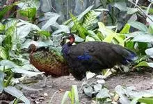 刚果孔雀:体型较小,体长60-70厘米,体重约1.2-1.5千克。刚果孔雀有违鸟类世界一般规律的生理特征,雌性比雄性更漂亮。雄性通体呈紫蓝色,颈部裸露出鲜红色的皮肤,雌性则呈红褐色,…全部>>