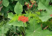 麻风树是大戟科麻风树属小乔木或灌木状植物。株高可达5米,具水状液汁,树皮平滑;枝条苍灰色,疏生突起皮孔,髓部大;叶纸质,呈卵圆形,先端短尖,基部心形;花序腋生,苞片披针形,雄花花瓣长圆形,雌花萼片离生,…全部>>